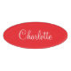 Personalize this classic red and white name tag with your name. This simple design features your first name in elegant white script over a professional red background, making it easy for customers and colleagues to identify you. Perfect for business professionals, retail employees, and modern workplace environments. The clean, classic styling works beautifully in any professional, retail, networking, corporate event, trade show, meeting, school event, book club, group travel, or conference setting.