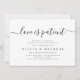Simple elegant script love is patient postponement invitation
