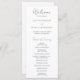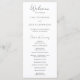Classic black and white wedding program featuring a simple design with a modern, minimalist touch. Accent words are in an elegant script typography and the remaing text is in a traditional serif font.