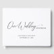 This black and white wedding guestbook offer a modern minimalist design. The words "Our Wedding" appear in a modern elegant handwriting calligraphy. Custom text allows to to personalize with the names of the couple and their wedding date.