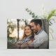 Share the news of your engagement and upcoming marriage with this one-photo horizontal save the date card featuring an elegant type treatment in white that sits at the bottom of a horizontal photo. The type has room for long names, plus location date and other information for friends and family like a website. The back is a neutral shade with a subtle texture pattern with room for a second photo. The colour can be adjusted by clicking "Customize."