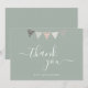 Modern elegant script sage green baby thank you card featuring watercolour bunting.