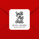Mark the beginning of your forever with the Simple Elegant Script Save The Date Boho Wedding Square Sticker. Featuring a graceful script that embodies boho chic and understated elegance, this sticker is perfect for sealing your invitations or adorning wedding favours. Customize it with your names and wedding date, making it a personalized keepsake. This sticker beautifully sets the tone for your special day, capturing the essence of your unique love story.