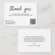 Modern discount card featuring a simple and minimal black and white design with "thank you" in an elegant script. Below are your social media icons and optional qr code. You may remove the qr code and change, add or remove the icons in the design editing tool. These mimimal discount cards are great for any business with handmade items or online orders.