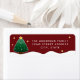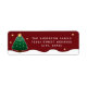 Simple Elegant Starry Snowy Christmas Tree on Red label