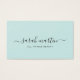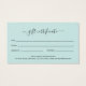 Élégant certificat cadeau de taille carte de visite en turquoise / turquoise avec votre nom avec des swashes dans un script manuscrit avec votre titre. L'arrière contient le formulaire de certificat-cadeau ainsi que les coordonnées de votre entreprise. Ce design simple et minimaliste est idéal pour un maquilleur, un coiffeur, un technicien en cils, un salon de beauté / ongles ou toute entreprise appartenant à une femme. VEUILLEZ NOTER : Les enveloppes ne sont pas incluses.