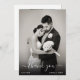 Thank friends and family for sharing your wedding celebration with you with this simple elegant thank you cards. Featuring a photograph on the front with elegant calligraphy script, names and date. On the reverse is a second picture with a personal message from the newly married couple. Text is easily customized by using the template provided.