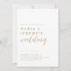 Simple white and gold wedding invitation in modern, chic and elegant typography style. All text is customizable, personalize with bride and groom's names, wedding/party details and monogram. Perfect for wedding and engagement party.
