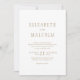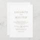 Simple Elegant White Wedding Invitation. A modern design with a classical feel. Pure elegance with customizable antique gold coloured text on white. The invitation line “the honour of your presence” is perfect for a ceremony to be held in a place in a house of worship. Honour is spelled with a “u” in the British fashion. For other venues, you may choose to replace this text with “the pleasure of your company”.
