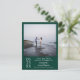This emerald green coloured postcard is the perfect way to let your friends and family know about your upcoming wedding. Features a simple minimalist design with is artsy, modern, and elegant including your photo with white text containing all of the vital information.