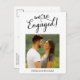 Cute calligraphy overlay engagement announcement. Easy to personalize with your details. Please get in touch with me via chat if you have questions about the artwork or need customization. PLEASE NOTE: For assistance on orders, shipping, product information, etc., contact Zazzle Customer Care directly https://help.zazzle.com/hc/en-us/articles/221463567-How-Do-I-Contact-Zazzle-Customer-Support-.