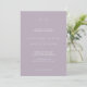 Cette carte faire-part de mariage simple, minimaliste et moderne présente des lettres modernes en blanc avec arrière - plan lilas/violet poussiéreux. Vous pouvez trouver des produits correspondants dans mon magasin.