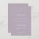 Cette carte faire-part de mariage simple, minimaliste et moderne présente des lettres modernes en blanc avec arrière - plan lilas/violet poussiéreux. Vous pouvez trouver des produits correspondants dans mon magasin. LA TAILLE DE CETTE INVITATION EST DE 3 x 5, VEUILLEZ CHANGER LA TAILLE SI VOUS VOULEZ 5 x 7.