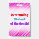 Cette conception simple et motivante de badge comporte le message "Étudiant exceptionnel du mois!". Un badge comme celui-ci pourrait être utilisé pour encourager un étudiant. [~Z0000317]