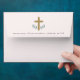 Simple watercolor eucalyptus leaves with gold colour cross pastel blush pink envelope for Christian baptism invitations or religious occasions. This design includes your return address on the back. Please view this collection for coordinating invitations.