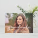Célébrez la joie et la fierté de votre diplôme d'études secondaires ou collégiales avec ce carte photo moderne. Entièrement personnalisable avec votre propre image diplômée et vos couleurs préférées.