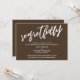 La distinction de cette suite est due à la police de caractères moderne et manuscrite utilisée pour les phrases d'accentuation. Dans le cas où vous auriez besoin d'informer vos invités que votre mariage a été annulé, cette carte propose une option audacieuse et accrocheuse. Dans ce modèle, la police de caractères manuscrite a été utilisée pour créer un graphique simple représentant le mot "regrettablement". Utilisez les champs de modèle pour ajouter vos informations personnelles et rendre ce design moderne et unique vôtre. Le fond uni peut être changé en n'importe quelle couleur de votre choix. N'hésitez pas à nous contacter pour toute demande spéciale ou pour une aide à la personnalisation. // 100 //