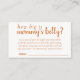 Neutral autumn dusty burnt orange and white "how big is mommy's belly" baby shower or gender reveal party guessing game enclosure card featuring a fun, casual hand-lettered script. The classic design includes a modern handlettered quote typography overlay. For other colours or matching products, please visit the JustFharryn Zazzle store, or contact the designer, c/o Fharryn@yahoo.com All rights reserved. #bohochic #zazzlemade