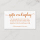 Modern "gifts on display" shower, birthday, or gender reveal party enclosure card featuring a fun, casual hand-lettered script. The classic design includes a modern handlettered quote typography overlay along with a poem. For other colours or matching products, please visit the JustFharryn Zazzle store. All rights reserved. #bohochic #zazzlemade