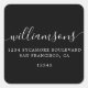 Simple family return address stickers with your name in white stylish calligraphy and modern typography on a black background. Perfect for all your mailing! Exclusively designed for you by Happy Dolphin Studio.