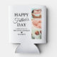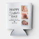 Minimalist father's day can cooler featuring a simple white background, the message "happy father's day", a saying that reads "I love you to the moon and back", a cute heart, and your childrens names. Plus 6 family photos for you to customize with your own to make this an extra special dad gift.