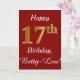 Ce simple design de carte d'anniversaire comporte le message "Joyeux 17ème anniversaire", avec le "17ème" ayant une apparence fausse or. Il porte également un nom personnalisé et un arrière - plan rouge foncé. Cela pourrait être donné à quelqu'un qui célèbre son dix-septième anniversaire.