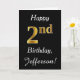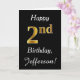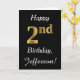 Ce simple design de carte d'anniversaire comporte le message "Joyeux 2e anniversaire", avec le "2e" ayant une apparence fausse or. Il comporte également un nom customisé et un arrière - plan noir. On pourrait le donner à quelqu'un qui célèbre son deuxième anniversaire.