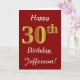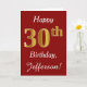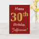 Ce simple design de carte d'anniversaire comporte le message "Joyeux 30e anniversaire", avec le "30e" ayant une apparence fausse or. Il porte également un nom personnalisé et un arrière - plan rouge foncé. Il pourrait être donné à quelqu'un qui célèbre son trentième anniversaire.