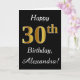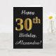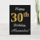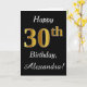 This simple birthday card design features the message "Happy 30th Birthday", with the "30th" having a faux gold-like appearance. It also features a customized name, and a black background. It could be given to somebody who is celebrating their thirtieth birthday.