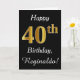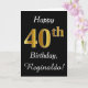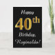 Ce simple design de carte d'anniversaire comporte le message "Joyeux 40e anniversaire", avec le "40e" ayant une apparence fausse or. Il comporte également un nom personnalisé et un arrière - plan noir. On pourrait le donner à quelqu'un qui célèbre son quarantième anniversaire.