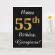 Ce simple design de carte d'anniversaire comporte le message "Joyeux 55ème anniversaire", avec le "55ème" ayant une apparence fausse or. Il comporte également un nom personnalisé et un arrière - plan noir. Il pourrait être donné à quelqu'un qui célèbre son cinquante-cinquième anniversaire.
