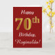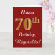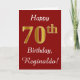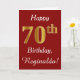 Ce simple design de carte d'anniversaire comporte le message "Joyeux 70e anniversaire", avec le "70e" ayant une apparence fausse or. Il porte également un nom customisé et un arrière - plan rouge foncé. Il pourrait être donné à quelqu'un qui célèbre son soixante-dixième anniversaire.