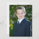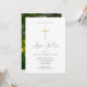 Simple religious first Holy Communion invitation features classic calligraphy script and a simple gold colour cross with a full photo back.