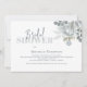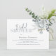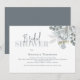 This design features watercolor floral foliage dusty blue, with a QR code gift registry online, website URL store register, modern elegant calligraphy script font, a simple elegant botanical greenery rose, modern simple minimalist typography font, fall winter summer spring style, romantic soft elegance simplistic, floral bridal shower invitations, a bridal shower with gift registry