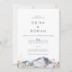 This simple floral mountain all in one wedding invitation is perfect for an outdoor wedding. The modern minimalist design features a navy blue watercolor mountain with blush pink moody fall wildflowers. Save paper by including the details on the back of the wedding invitation instead of on a separate enclosure card. Include the RSVP info as well if your guest will be replying electronically (optional).
