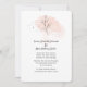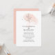 Minimalist wedding invitation, done in white with a splash of blush peach watercolor, at the top, with a simple black floral decoration. The back is done in a solid blush peach. Personalize the dark charcoal text for your special day.
