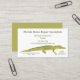 These clean and simple business cards feature a realistic style illustration of alligator in olive green making them perfect for business owners in gator country. There's spots to personalize these general purpose business cards with your business name, your name, your job title, your phone number and your email address. You can also add a tagline and license or insurance info.
