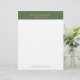 The elegant, simple, and minimalistic letterhead design features customizable gold typography on a forest green linen texture imitation.