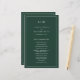 Simple Wedding Program featuring a modern yet elegant design with your two letter monogram at the top and your details surrounded by a thin border. All text is in white over a forest green background and may be changed in the design editing tool. The front has your order of ceremony and the back has your wedding party and thank you message. A chic and stylish design that is great for a minimalist couple. These cheap wedding programs are printed on sheets of paper for a budget friendly option.