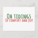 This simple text design features a line from a Beloved Christmas carol with the words "Oh Tidings" in a cool green all caps handwritten font and the words "Of Comfort and Joy" under that in the same cool font but in red and a little smaller, all on a white background. You can choose a different background colour if you like but I recommend only light colours so that the text doesn't have white edges.
