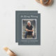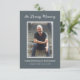Simple steel blue funeral memorial flat thank-you cards feature "In Loving Memory" with your loved one's photo, name, birth and death dates on the front, and your thank you message on the back (which can be customized to your own words). Beautiful for a funeral service or celebration of life memorial thank you.