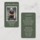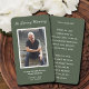 A simple dark green memorial card features "In Loving Memory" with your loved one's photo, name and birth-death dates, and a poem or prayer on the back. Beautiful for a treasured keepsake, funeral services, and celebration of life memorial.