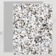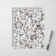 Classy, fun and contemporary scrapbook paper sheet with brown, grey, black and white terrazzo mosaic art pattern design on a white background.
