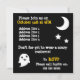 A simple Halloween Party Invitation featuring a cute white ghost on a black background. Great for children parties! Customise all the text to suit your needs!