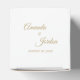 This simple gold calligraphy square favour box brings an elegant luxury but modern feel to both a minimalist and more traditional or formal wedding. The casual calligraphy allows for an antique feel, while the classy neutral design can be combined with any unique aspects of your marriage celebration.