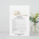 This simple gold calligraphy "what's in your purse" game is perfect for a chic bridal shower. The front of the game card features "how well do you know the bride", and the back of the card features "what's in your purse". The classic romantic design features faux gold foil typography and a lovely golden heart. Personalize the front of the card with the brides name and bridal shower date.
