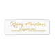 These custom personalized Christmas return address labels have gold coloured letters on a white background. It says Merry Christmas in script calligraphy or typography and has a sample name and address.