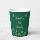 Unique simple paper cup featuring romantic and elegant gold flowers and butterflies on emerald green background