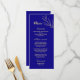 Unique simple wedding menu featuring romantic and elegant gold flowers on royal blue background