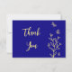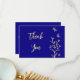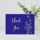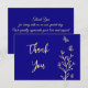 Simple gold flower royal blue wedding thank you card